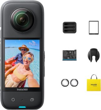 Insta360 X3 Pack Azione registra in 360 a 5.7K HDR e in 4K con obiettivo singolo. Scatta foto 72 MP. I sensori 1/2 pollice 48 MP migliorano dettaglio e gamma dinamica. La stabilizzazione FlowState con 360 Horizon Lock mantiene l’orizzonte stabile. È impermeabile 10 m senza custodia. La batteria dura fino a 135 minuti in condizioni standard di ripresa. Il bastone selfie invisibile scompare dal frame. Il pack include batteria aggiuntivahub di ricaricaprotezioni lentiproteggi schermocopriobiettivo e borsa.