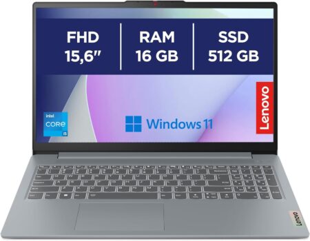 Lenovo IdeaPad Slim 3 da 15,6 pollici FHD 1920 x 1080 con Intel Core i5‑12450H. 16GB RAM LPDDR5 per multitasking e 512GB SSD per avvio rapido. Wi‑Fi 6 stabile per lezioni, lavoro e streaming. Windows 11 Home preinstallato. Scocca Arctic Grey sottile e leggera per lo zaino. Porte USB‑C full‑function per ricarica, display e dati.