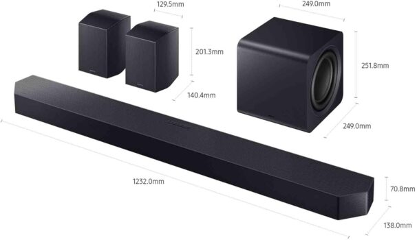 Samsung HW‑Q990F/ZF è una soundbar 11.1.4 canali con 23 speaker e Dolby Atmos wireless sui TV Samsung compatibili. Supporta DTS:X, Q‑Symphony con TV Samsung e Active Voice Amplifier Pro per dialoghi chiari. SpaceFit Sound Pro calibra l’audio in base alla stanza. Ingresso HDMI eARC per flusso audio senza perdite. Wi‑Fi e Bluetooth integrati. Telecomando e staffa a muro inclusi.