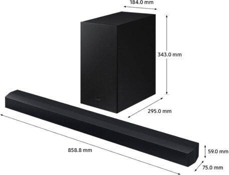 Migliora l’audio della TV con sistema 2.1 canali. Il subwoofer wireless valorizza i bassi. DTS Virtual:X crea effetto surround 3D. Con Adaptive Sound Lite le voci restano chiare nelle scene confuse. Usa telecomando unico con TV Samsung per volume e modalità. Connettività Bluetooth per collegare la TV senza cavi. Presente HDMI eARC nelle varianti compatibili, verifica il modello.