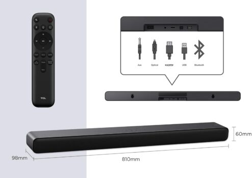 TCL S45HE è una soundbar 2.0 da 100W pensata per migliorare dialoghi e spazialità con contenuti TV e streaming. Dolby Atmos e DTS Virtual:X ampliano la scena sonora. Il Bluetooth 5.2 facilita l’ascolto da smartphone. HDMI eARC semplifica collegamento e controllo volume con il telecomando TV.