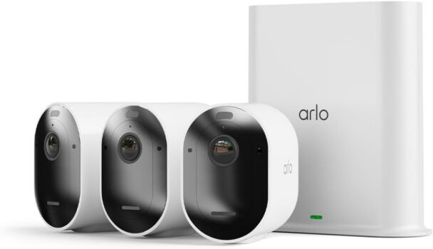 La telecamera Arlo Pro 5 ti aiuta a proteggere casa in modo semplice. Hai un kit con tre telecamere senza fili, perfette per installazione esterna. Puoi registrare video in 2K HD, vedere di notte a colori e ricevere notifiche se rilevano movimento.